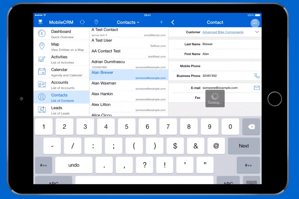 In Online Mode user is directly connected to the back-end system with complete access to real-time data. The app can also store data in the users’ mobile device. Via Offline Mode, the user can still maintain quick access and work with the data even if the internet connection is not available. The changes made (create a new account, edit an order, etc.) will be reflected in the CRM organization the next time it is synchronized with the app.